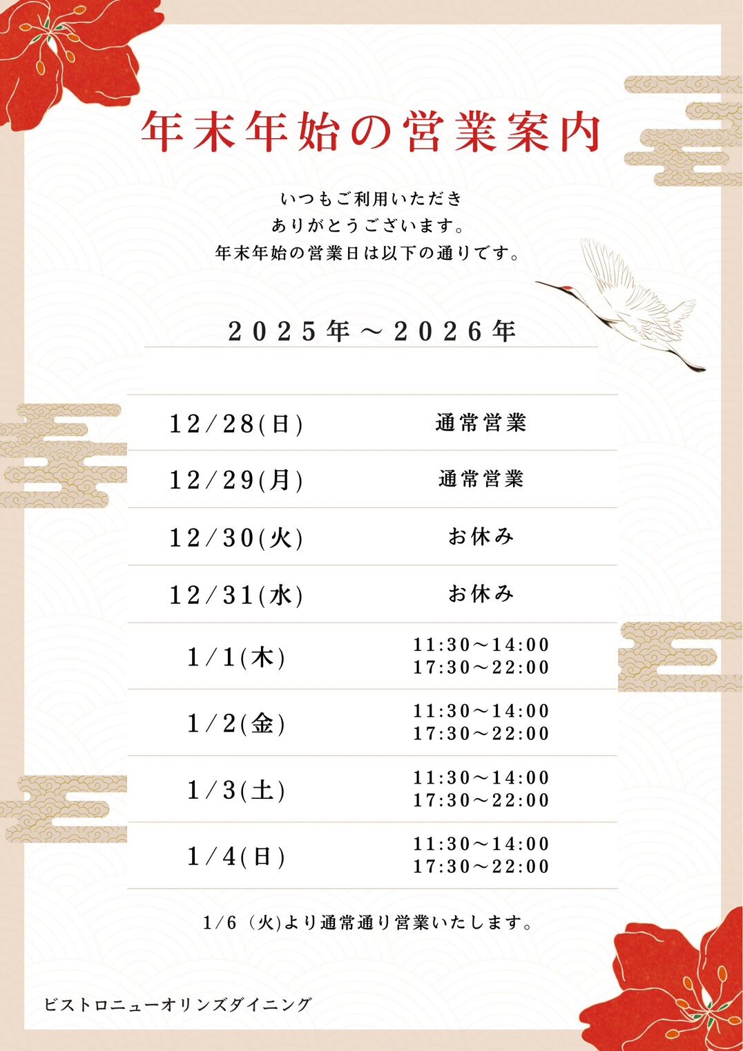 年末年始の営業案内